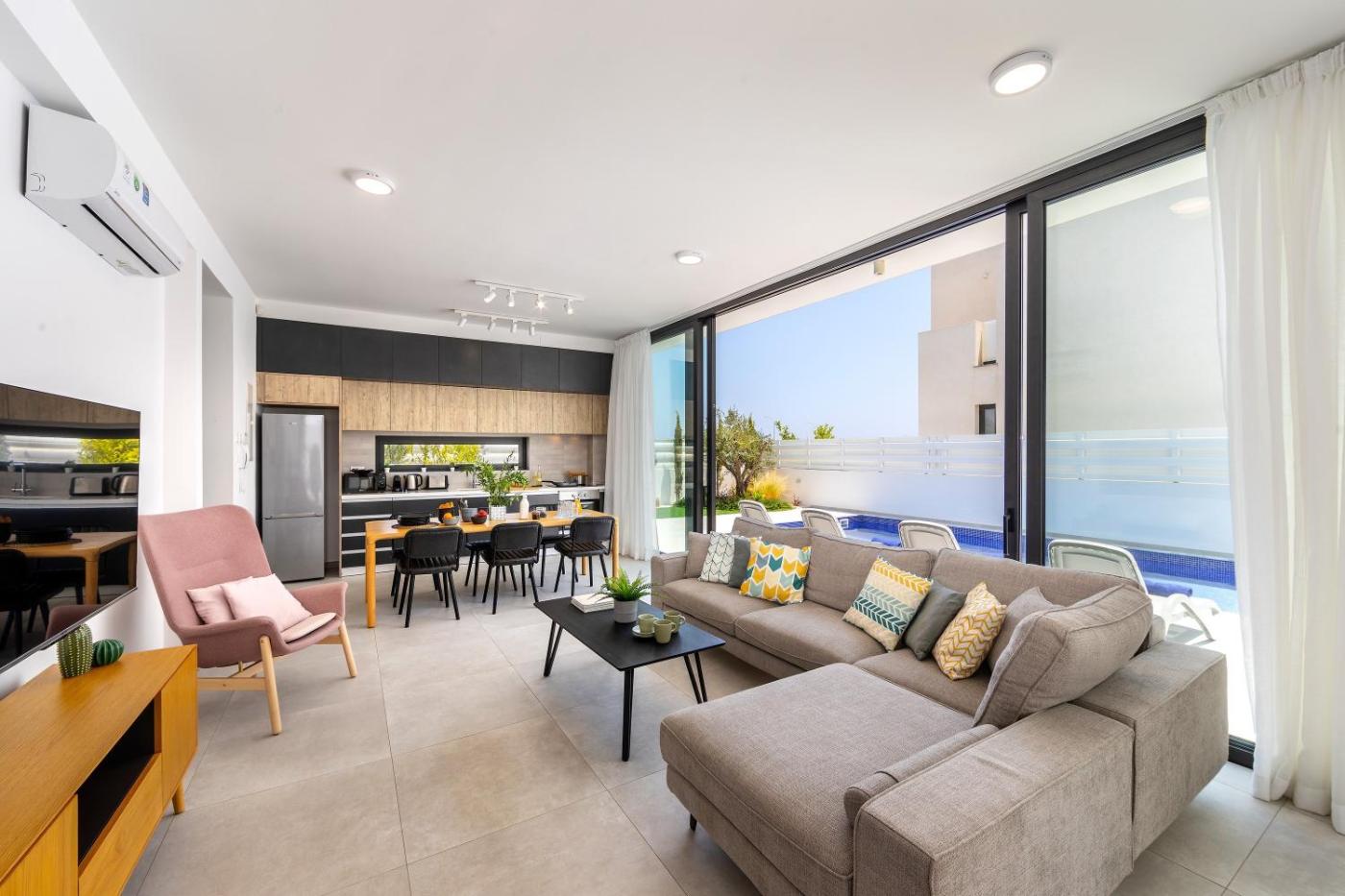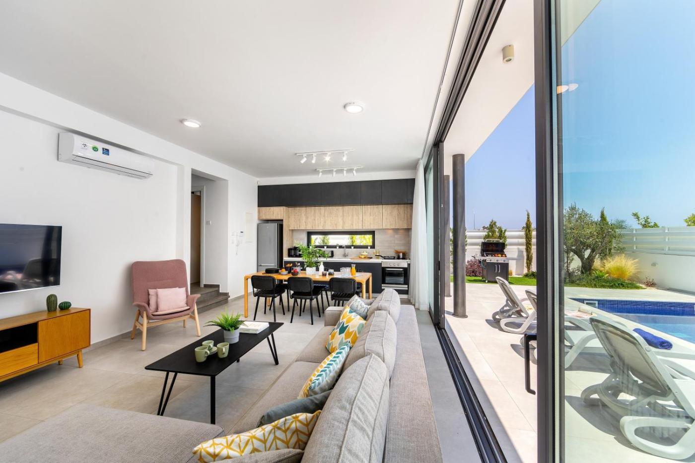 Villa with Private Pool. This villas special features are the private pool and the hot tub. Boasting a private entrance, this air-conditioned villa comes with 1 living room, 3 separate bedrooms and 4 bathrooms with a shower and a hairdryer. Guests will find a stovetop, a refrigerator, a dishwasher and kitchenware in the well-equipped kitchen. The villa also includes a barbecue. This villa has a washing machine, flat-screen TV with satellite channels, garden views, as well as winechampagne for guests. The unit has 4 beds.